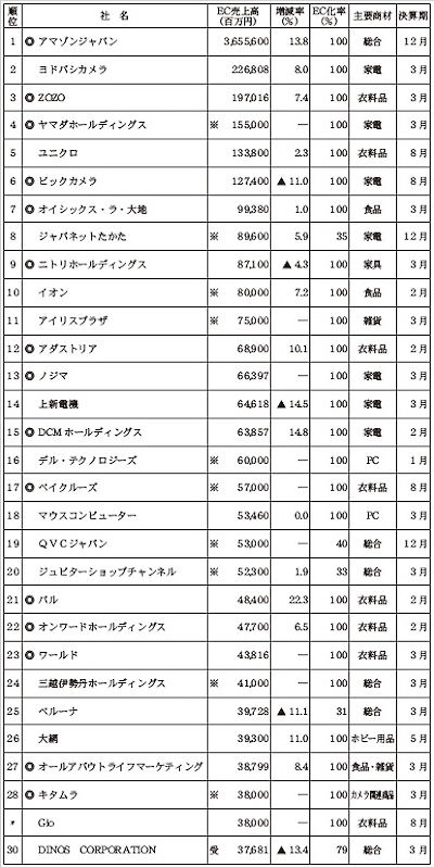 まずは下記主要国のEC市場シェアの表をご覧ください。