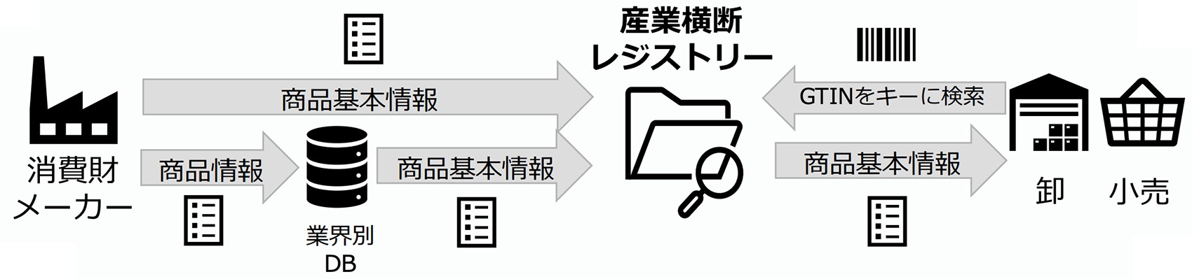 産業横断レジストリーに登録されたデータが、業界全体で使用する商品データの正本となります。