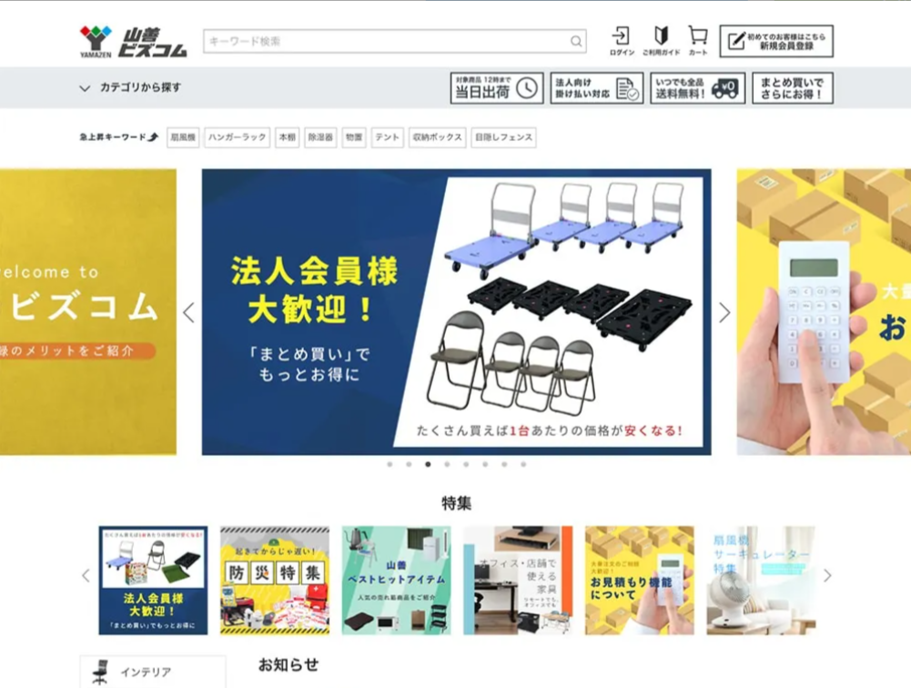 EBISUMARTとReviCoの標準連携がスタートしたのは2025年8月ですが、これに先立ち、EBISUMARTで運営されているBtoB-ECサイト「山善ビズコム」にて、ReviCoを先行導入しています。