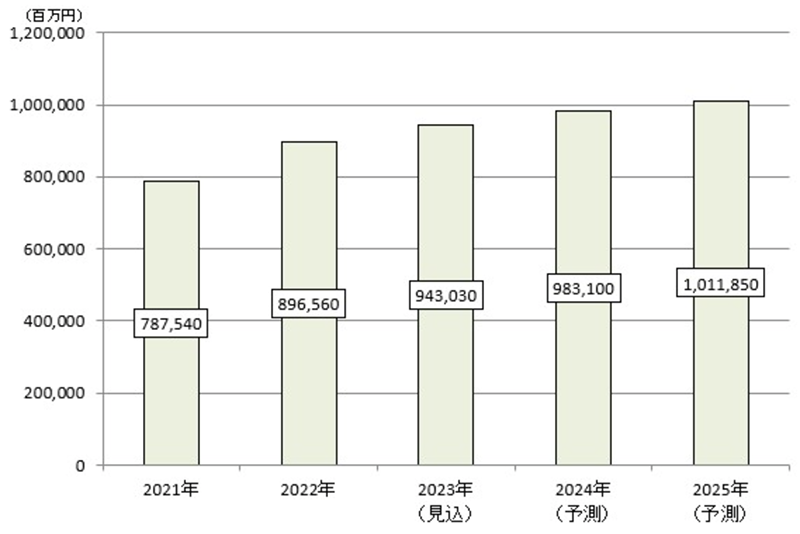 矢野経済研究所によると、2022年度は8,966億円の実績で3年後の2025年度は1兆円を超える予測となっています。この背景には下記の3つの理由があると筆者は考えます。
