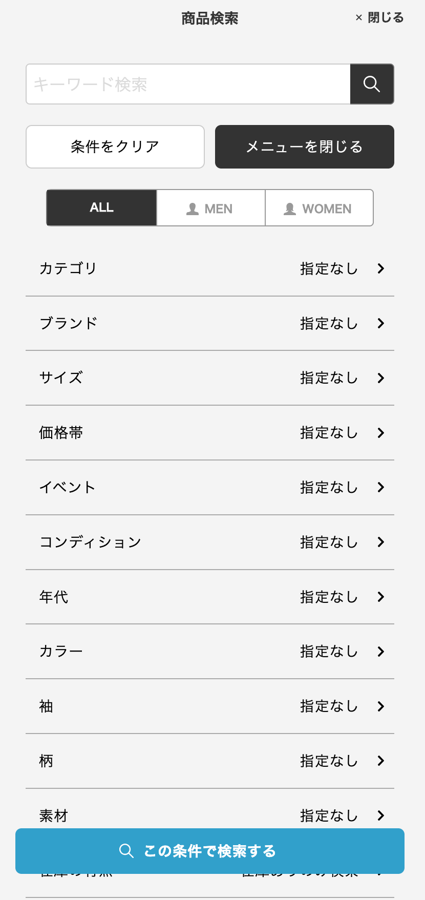 ポイント③ 古着ならではの条件で商品を絞り込める検索設計