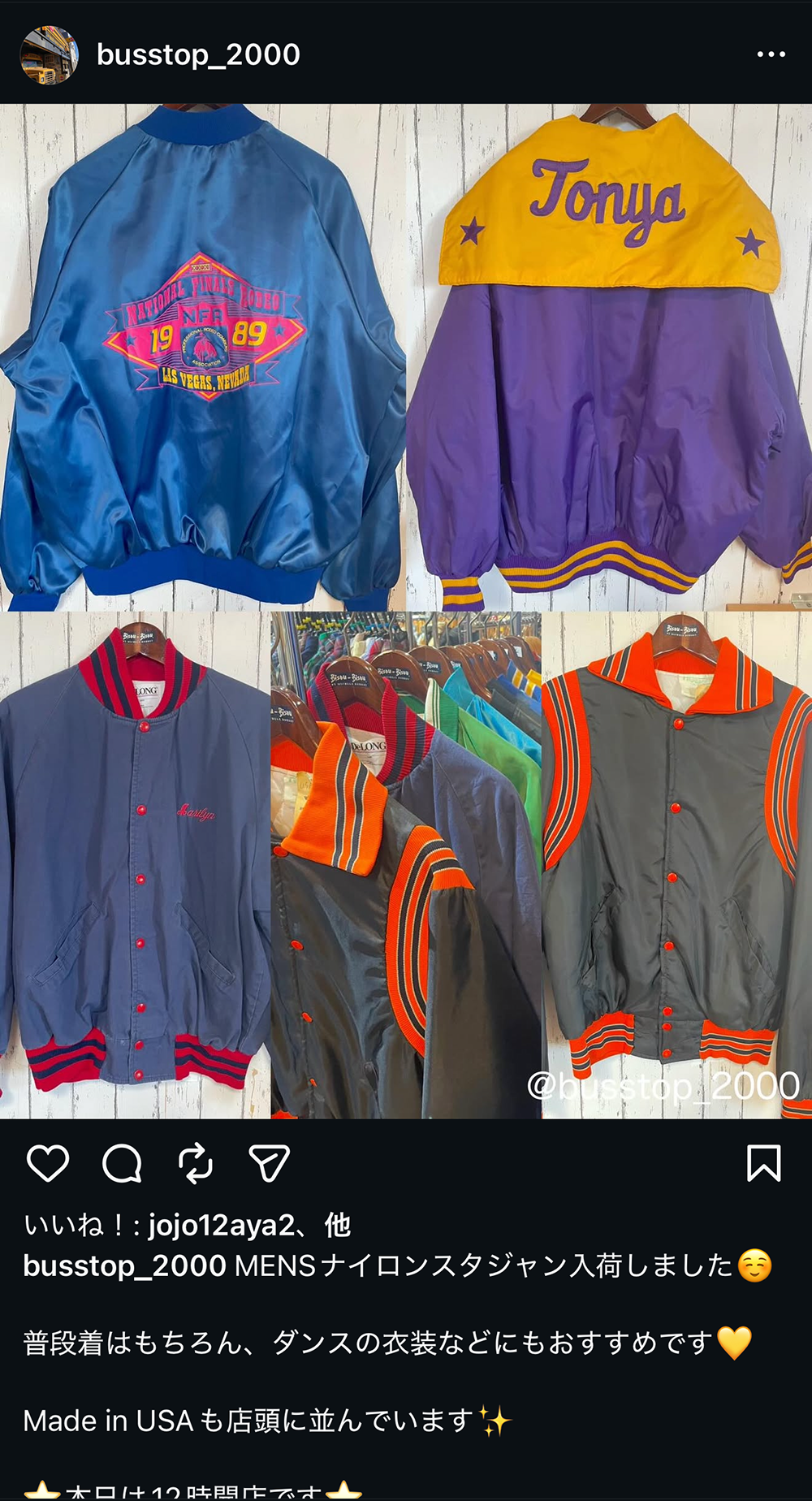 ◆Instagramで入荷情報を発信:アメリカ古着屋「バスストップ」