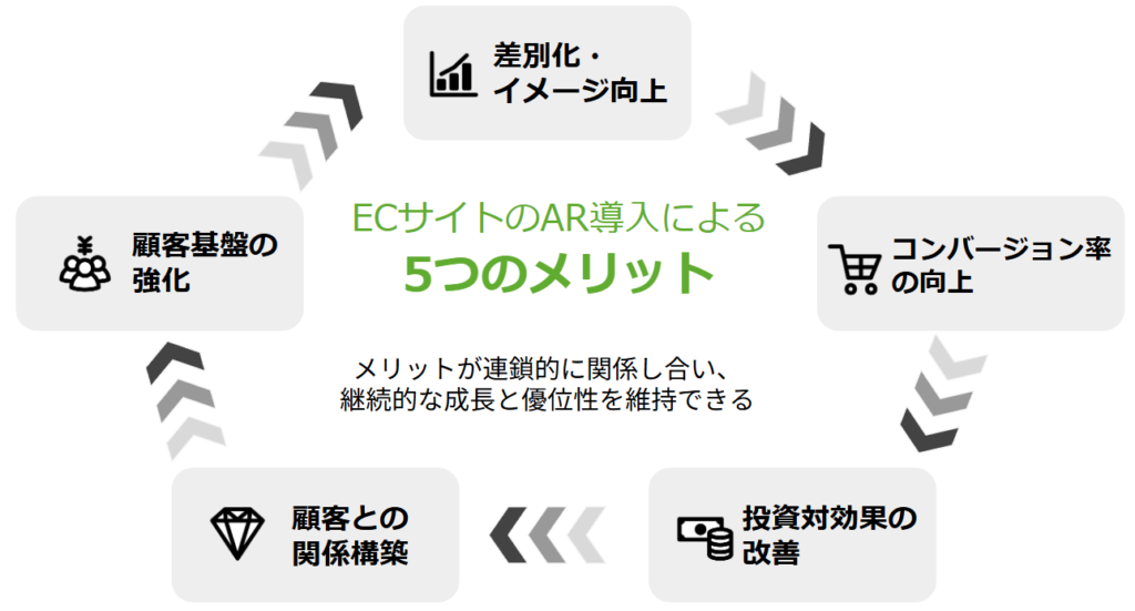 ECサイトでARを導入することで得られるメリットは、大きく5つあります。