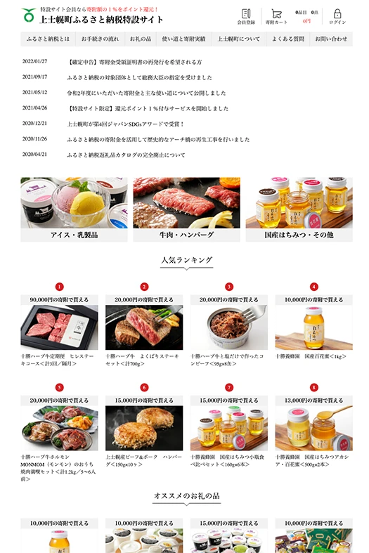 - ・北海道・上士幌町(かみしろほちょう)役場が運営する、ふるさと納税特設サイト
